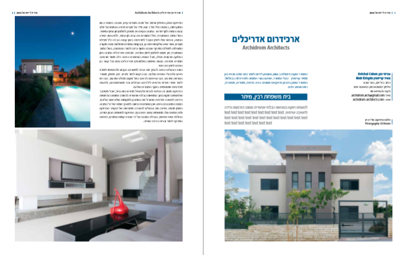 כתבות כתבות אודות הפרוייקטים שלנו באדריכלות שפורסמו במגזינים שונים לאדריכלות בארץ וכתבות מאתרים נוספים. לצפייה בכתבה לחצו על התמונה כתבה מתוך המגזין "The Marker" כתבה מתוך המגזין "אדריכלי ישראל" 2016 כתבה מתוך המגזין "אדריכלי ישראל" 2014